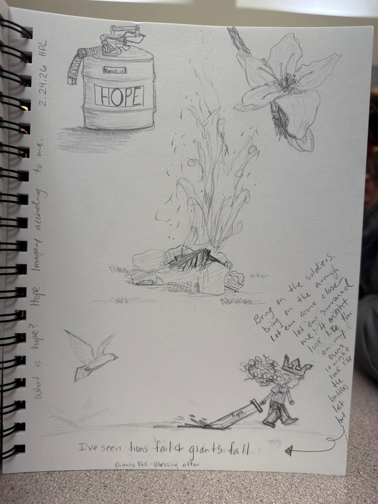 I have been thinking about what hope has meant to me over the years. Instead of words o opted to sketch a few images.
